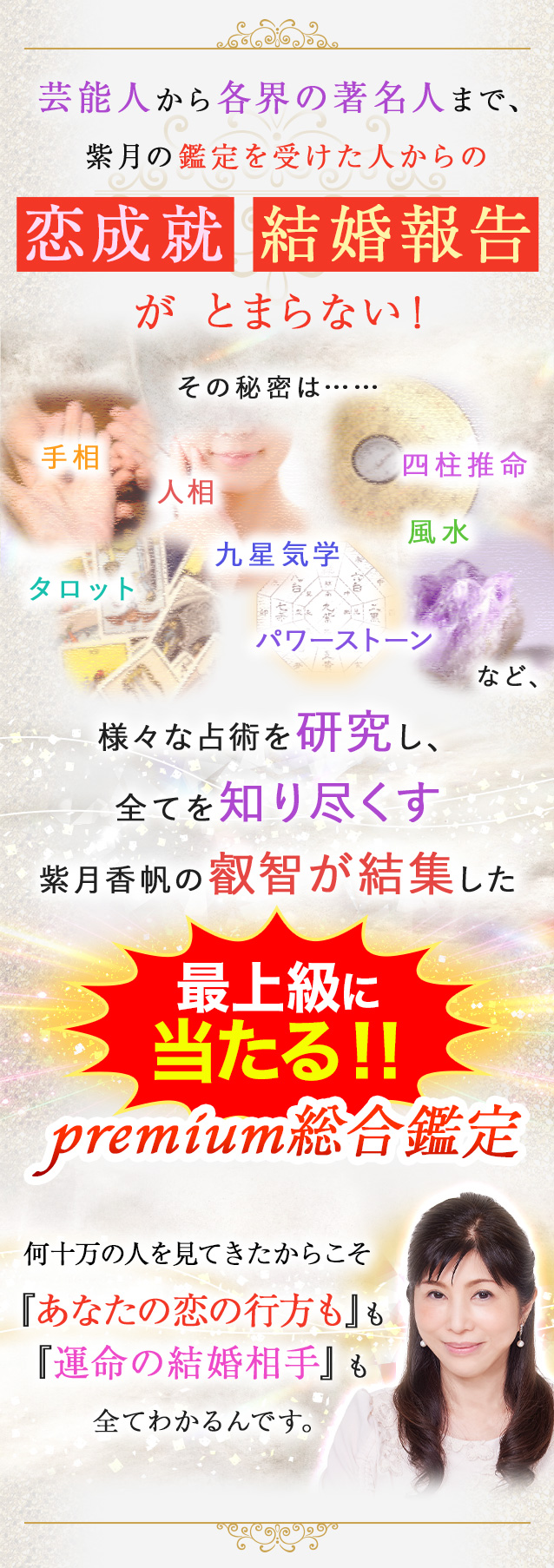 鑑定実績30年超!当たりすぎ!美人すぎ!な占い師として絶大な人気を誇る紫月香帆は恋を叶えるプロフェッショナル!